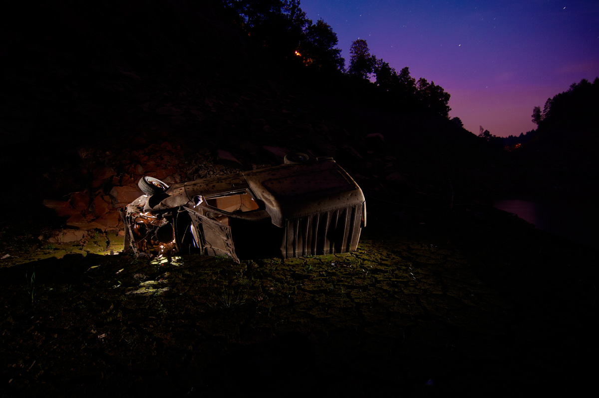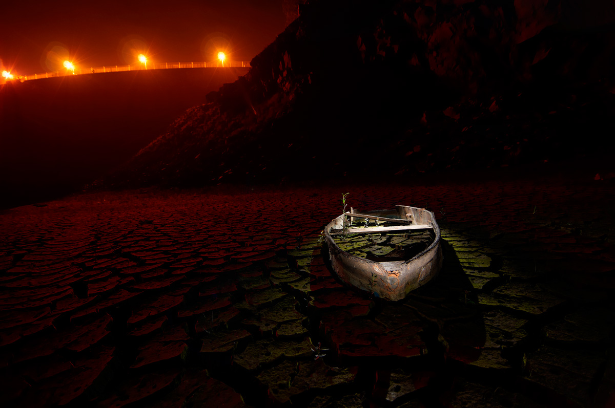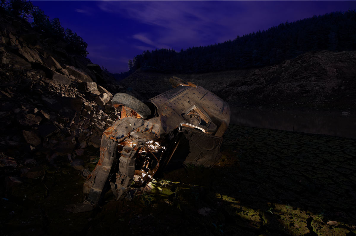 In dem absurden Gelände, ohne jegliche Vegetation tauchten nahe der Staumauer diese Wracks, ursprünglich ca. 20 m unter der Seeoberfläche zum Vorschein.