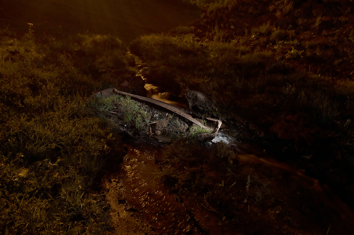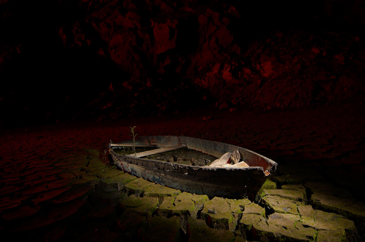 Ob das Ruderboot zur selben, ca 400m entfernten Anlegestelle gehört, wie das vorherige ist nicht zu erkennnen. Durch die Absenkung des Wasserpegels wurde es in das Tal des Stromes gespült und unter diesen Kräften stark lediert.